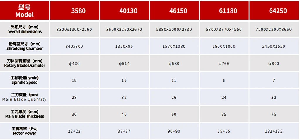 设备特点:双主轴逆向旋转结构,刀组采用交错咬合设计,配备过载保护装置与独立润滑系统。机身采用高强度钢材焊接,可承受持续作业的高强度负载。